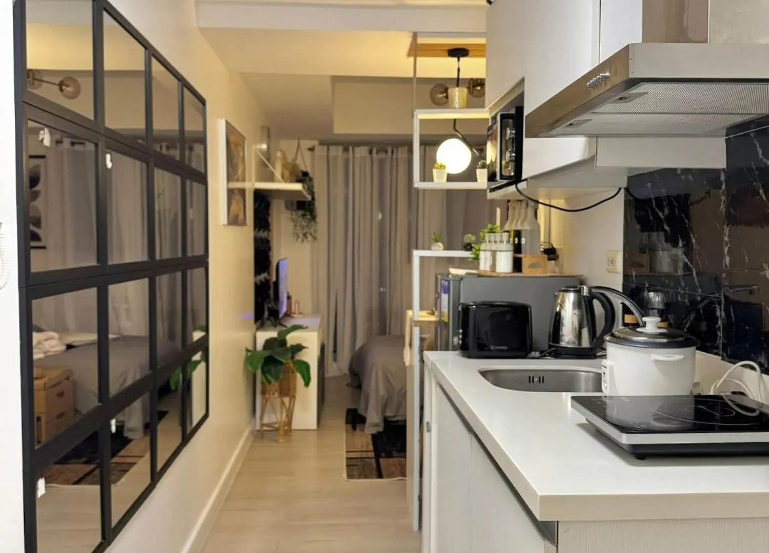 この宿泊の台所を利用して、おいしい自家製の食事を作ることができます。 Staycation Near Sucat Toll Gateアパートはニノイ・アキノ国際空港から5キロメートルの場所にあります。